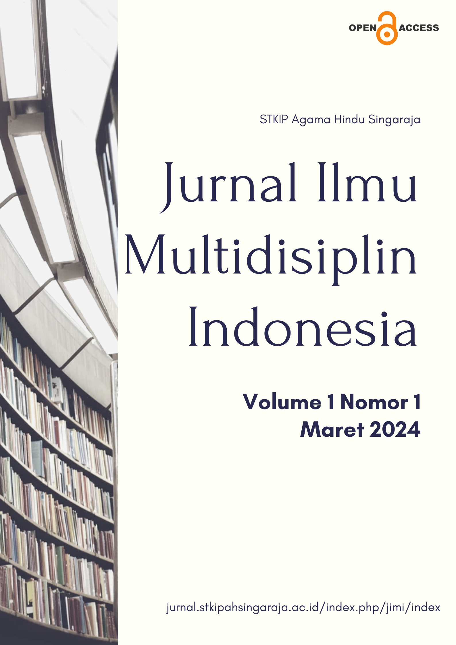 Vol. 1 No. 2 (2024)JIMI| Jurnal Ilmu Multidisiplin Indonesia adalah jurnal yang dikelola oleh kelompok dosen di lingkungan STKIP Agama Hindu Singaraja. Jurnal ini mewadahi hasil penelitian yang dilakukan oleh dosen, guru, praktisi, dan mahasiswa. Fokus dari Jurnal Ilmu Multidisiplin Indonesia adalah memberikan ruang untuk pengembangan ilmu pengetahuan diberbagai bidang.