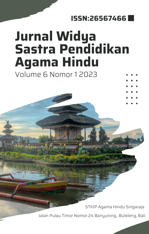 WSPAH | Widya Sastra Pendidikan Agama Hindu merupakan jurnal ilmiah yang diterbitkan oleh Prodi Pendidikan Agama Hindu, STKIP Agama Hindu Singaraja. Jurnal ini bertujuan untuk mewadahi penelitian, pengabdian, budaya terkait agama hindu. Karya ini bertujuan untuk mengkaji hasil penelitian sebagai rujukan atau referensi baru untuk dapat digunakan sebagaimana mestinya, yang di dalam hal ini mengarah pada bidang Agama Hindu.